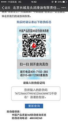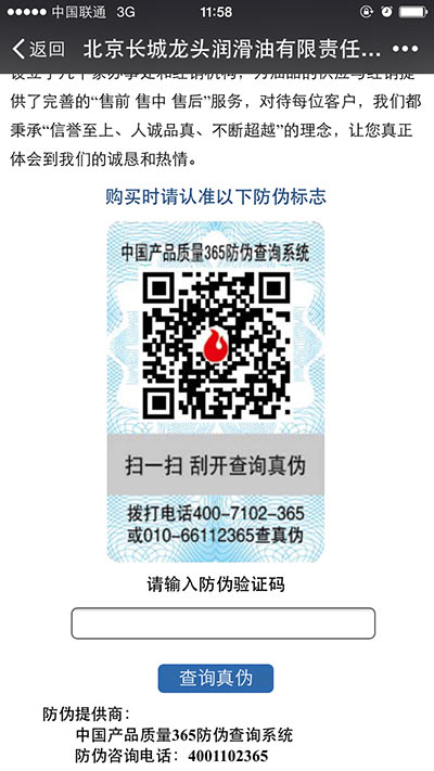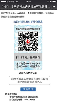 長城龍頭潤滑油防偽系統(tǒng)